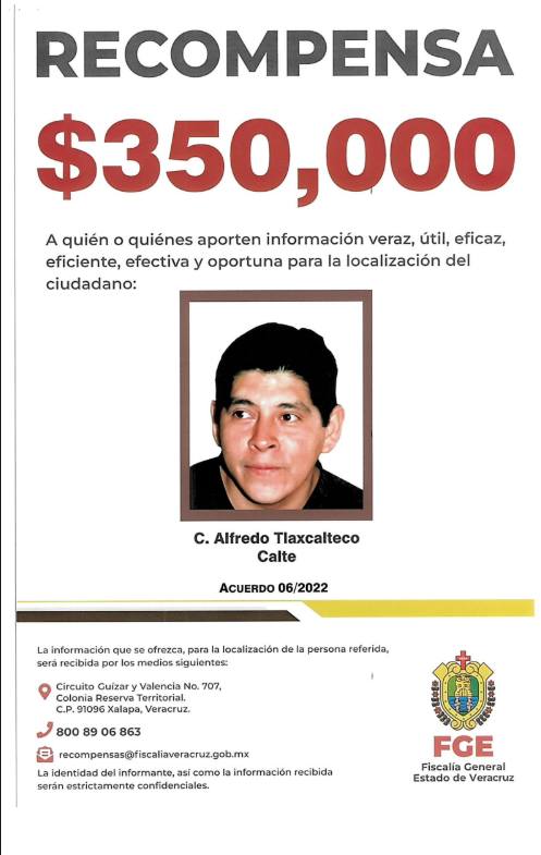 En colaboración con la Fiscalía General del Estado, atendemos la solicitud de difusión del Cartel de Recompensa correspondiente al C. Alfredo Tlaxcalteco Calte. Compartir en: